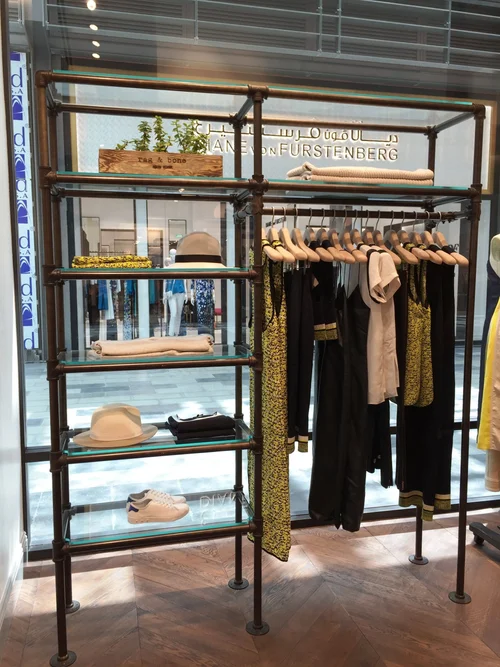 All store furnishings were produced to reflect the rag & bone aesthetic with a Middle Eastern infulence. This can be seen in the detailing of the rugs, central table, and cash counter, among other locally sourced furnishings.